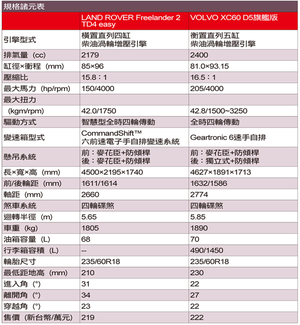 【捉對廝殺】LAND ROVER Freelander 2 TD4 v.s. VOLVO XC60 D5