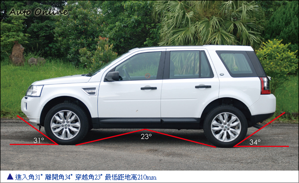 由於LAND ROVER車廠越野的歷史傳統,Freelander 2在外觀上,也需要有符合越野需求的設計。較短的前懸與後懸,使Freelander 2擁有31°的進入角與34°的離開角,然而2660mm得宜的軸距長度配上235/60R18尺碼的輪胎,也造就Freelander 2擁有23°的穿越角度與210mm的距地高度,這些車身條件在越野地形時,可協助四輪傳動系統做更好的越野性能發揮。