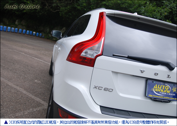 另外,XC60採用直立式的霓虹LED尾燈,其拉出的尾燈線條不僅具有煞車燈功能,還為XC60提升整體的時尚質感。將雙門跑車的DNA注入XC60中,讓SUV車款突破舊有的大而不當的刻板印象。也從XC60開始,VOLVO一直以來保守的設計概念,開始被慢慢突破、瓦解。