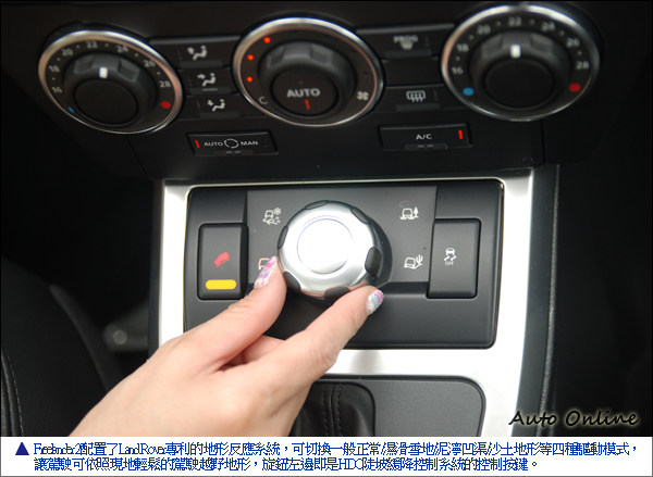 其實,除了這些看得到、摸得到的車室內裝外,新年式Freelander 2在腿部、頭部與肩部空間,營造最自然的乘坐空間,Command Driving Position指揮家式駕駛座座位設定,提供寬廣、清晰的駕駛視野以及乘駕氛圍。另外,Freelander 2具備後座比前座高50mm的獨家劇院式座椅配置,良好的視線亦是讓後方乘客在長途崎嶇多彎的山道上,還能安然舒適乘坐的重要因素之一。