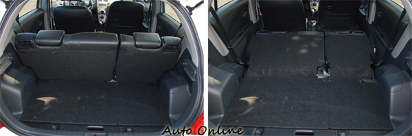 ▲March後置物空間結構方正,椅背放倒後平整度就屬一般。