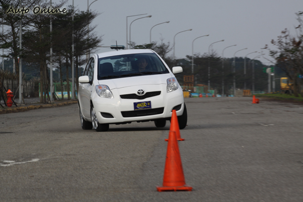 第一位上場的是Yaris,許多人談TOYOTA總會有一些既定印象就是不會跑、或是懸吊很軟之類的。採用四速自排的Yaris最大馬力109匹,輪胎部分則是採用185/60 R15的配胎。由於本身車重輕的關係,所以在加速部分的表現都還不錯,不大會有氣無力的感受。在連續繞錐的過程中車身還是可以感受到側傾的影響,但編輯組認為基本上還算是可以接受的範圍,沒有如外界講的有如行船人的行路表現。