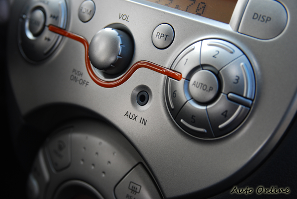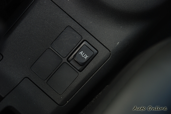 ▲AUX IN音源介面同樣設在面板上,一是把線拉長,不然就是把儲存裝置垂掛在面板上。