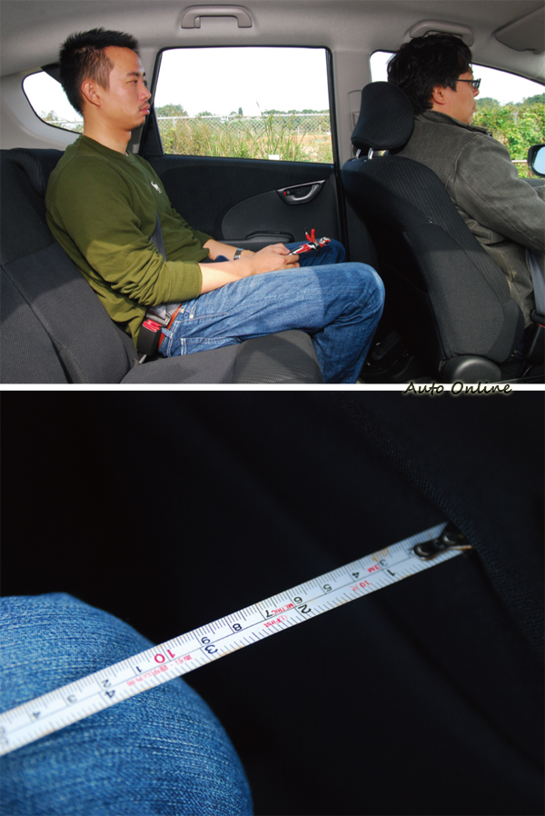 ▲一樣是在正常坐姿的條件之下FIT讓後座乘客可以保有3公分多的膝部空間,表現相當不錯。