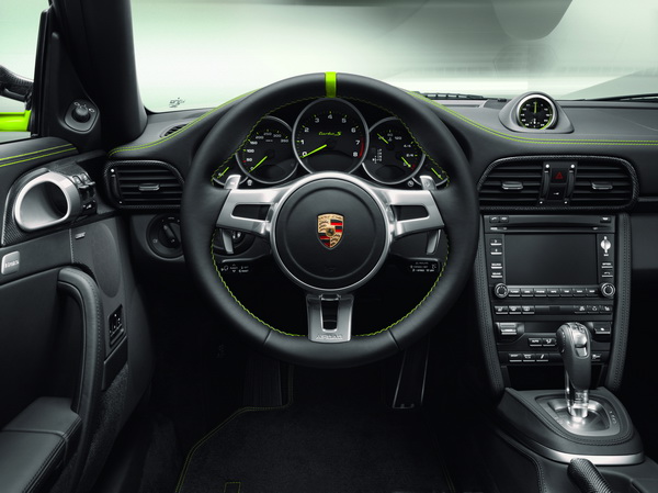 ![]() 911 Turbo S “Edition 918 Spyder”在科技與配備上皆基於標準版擁有530匹馬力的911 Turbo S。為了彰顯其特殊版本的不同,獨特的全真皮內裝、特殊儀錶板與額外的車內外碳纖維部件皆列為標準配備提供。