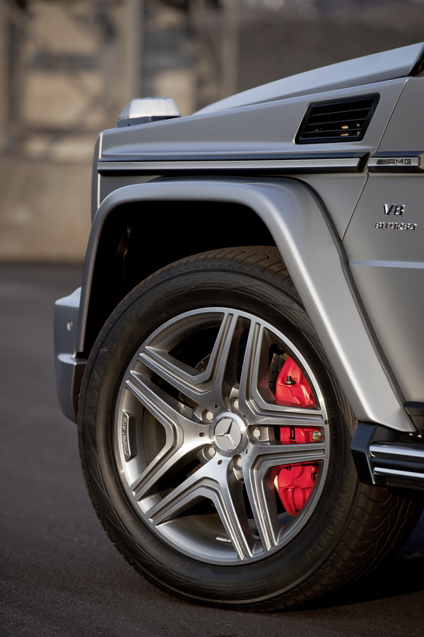 ![]() 跟隨SL63 AMG與SL65 AMG的腳步,G63 AMG同樣有著AMG家族的強悍面容。車頭方正而大面積的水箱罩與保桿上的三個進氣壩確保充足的進氣流量。頭燈組也有新的LED日間行車燈來與雙氙氣燈搭配。車側則有經典的特仕輪拱、不鏽鋼登車踏板與車身防撞護條。