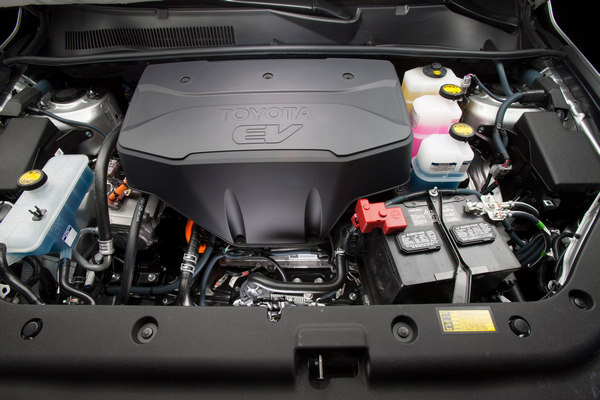 ![]() 外觀與一般汽油車型的RAV4稍有不同,像是頭燈換置LED型式,並加入日行燈組,同時保桿造型也有很大差異,包括取消大部分的進氣口等設計,以確保符合空氣力學最佳化。至於內裝部份,駕駛座椅為六向調整功能,具備加熱裝置,後座椅背分離設計也獲保留,因此載物機能上並沒有因此減少。中控台安裝了八吋觸控螢幕,可以顯示電動系統的運作情形,也整合了多媒體通訊等系統,儀錶框會因為Sport或Normal模式而自動切換為紅色或藍色。