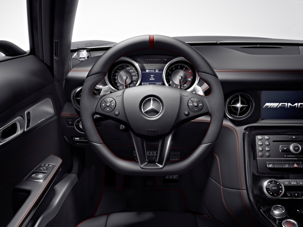![]() 所搭配的AMG SPEEDSHIFT DCT 7七速雙離合器自手排變速箱,其M模式的換擋時間更為縮短,讓SLS AMG GT的0-100km/h加速成績進步至3.7秒(之前為3.8秒),極速也略從317km/h增加至320km/h。