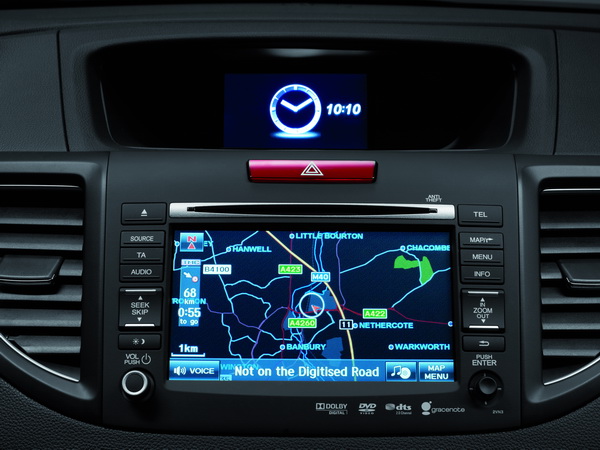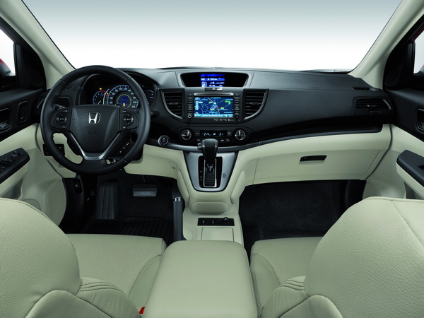 四代歐規CR-V駕駛介面是採取原廠稱之為「lean-layered」的設計,透過多層次的水平線條來鋪陳。車上各種功能控制被細心分類為方向盤後方的「駕駛者介面」區與中控台上的「資訊介面」區,讓駕駛與乘客可以很直覺地來操作。對於內裝用料也很講究,前方控台飾板施以細緻的紋路壓花處理,下方的飾條也施以特別的鍍膜處理,營造出3D立體效果。