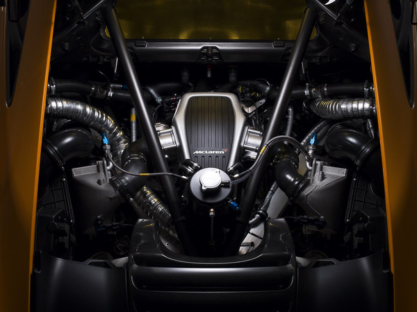 當然,車艙內部一切是以賽車用途為主,碳纖品無處不在,標準配備包括了兩張黑色賽車座椅、六點式安全帶,以及賽車等級的防滾籠。方向盤則直接流用12C GT3,造型和握徑據稱都是和Lewis Hamilton的MP4-24賽車一模一樣的設計,不過原廠還是為它配置了一套整合式空調系統。