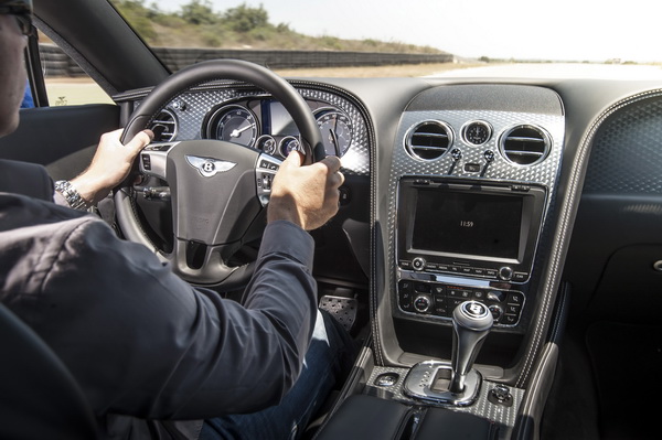 ![]() 外觀上,可以從一些小細節部分來分辨GT Speed與標準車型的不同,包括21吋十幅式鋁圈、水箱罩及前保桿氣壩暗色處理、「rifled」橢圓排氣尾管。而在手工精心打造的車室內,選用襯墊襯墊絎縫的打孔皮革以及經過特別處理的染色鋁合金與碳纖維飾板來鋪陳,將運動感與豪華感同步推向更高層次。
