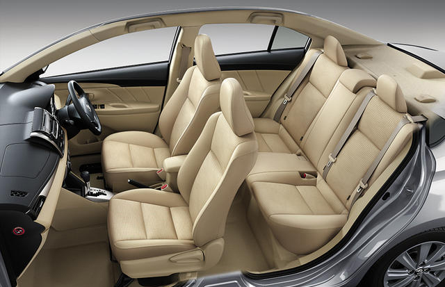 新Vios在外型上採用了與去年八月日本發表上市的Auris相同的設計語言「Keen Look」,來強調運動風與躍動感。車身尺碼為車長:4410×車寬:1700×車高:1475mm,比前代車款放大了一圈。特別是增加幅度達110mm的車身長度,對於車室乘坐表現與行李空間的提升都有幫助。這個尺碼甚至比在日本國內銷售的Corolla Axio還要大。