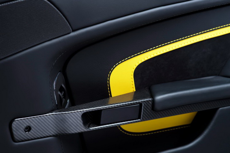 CC100 Speedster概念車很類似的水箱罩設計,內部採用碳纖材質與鈦銀網格,這也是新世代ASTON MARTIN車款的共同設計語言。車身比例雖然依舊小巧緊緻,但引擎蓋上的導氣口與外擴的輪拱依然對它的強悍運動能力做了明確的提示。車內跑車座椅換上新的式樣,也提供碳纖輕量材質跑車座椅做為選配,皮革也有 Luxmill與semi-aniline二個等級加上Alcantara複合皮革材質等選擇。