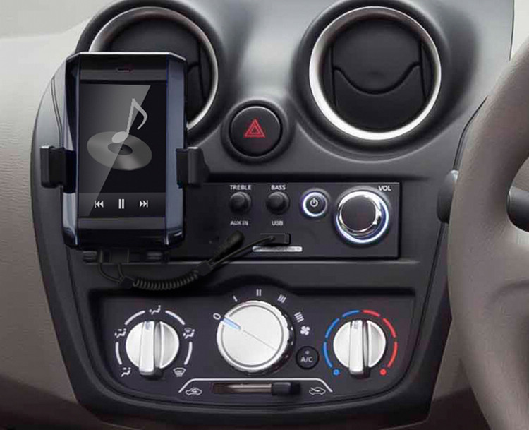![]() ▲以全新的全球戰略加速佔領印度、印尼、南非、俄羅斯等市場,NISSAN期待21世紀的DATSUN能夠擄獲其所謂的「Riser」目標客群芳心。DATSUN Go透過輕量化車身結構達到敏捷的加速性與節能表現,而為了創造大空間車室,設計師揚棄傳統將操作介面置於邊陲的作法,而將排檔座設計為懸浮平台,手煞車裝置也設於前方,藉此增加更多車室空間。中控台的設計也別出心裁,車上並沒有一般制式音響主機,而只提供一個音量旋鈕和電源開關,音樂來源則是透過使用者本身帶來的行動裝置,譬如隨身碟或播放器,透過USB插槽和AUX-In輸出端由車上喇叭收聽,果然是省成本與省空間的妙招。 ![]() ▲車上並沒有傳統的音響系統,充其量只能算是個轉接型揚聲器,這套被原廠稱為Mobile Docking Station的設計,看起來陽春,但實際上卻很符合大部分人的需求。換個角度來看,這其實只是血淋淋地說出一個事實:對於現在的消費者來說,與其拿著六片CD音響大作噱頭,還不如一個小小的USB插槽來得有吸引力。