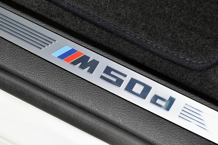 ![]() X5 M50d在外觀與一般的X5無太大差異,只增加外觀較動感的空力套件,並且在車身多處加上標榜性能的M標誌,對於喜愛M-Power的玩家而言,原廠增添的M標誌就等同夢幻逸品。車內利用較年輕的鋼琴烤漆飾板以及碳纖維飾板增添車內運動氛圍,同樣在車內多處鑲崁上M-Performance標誌;前座椅換上兩張包覆性好的跑車座椅,材質也改為麂皮設計,在椅背縫上象徵M-Power的三色標誌。