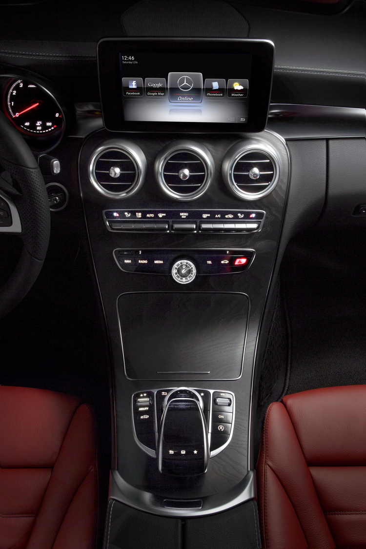 德國豪華車廠M-BENZ最近公布了他們旗下主力銷售車款C-Class下一代車型的內裝照片。下一代C-Class的控台設計延續M-BENZ最新的設計路線,與CLA-Class四門Coupe相當接近,具有流動感的造型線條是其中重要特徵。三輻式方向盤與車上五處圓形出風口等細節也與CLA有些共同性。不過由於C-Class的車格與產品定位比CLA高,所以在材質用料的質感與處理上會比CLA更好。