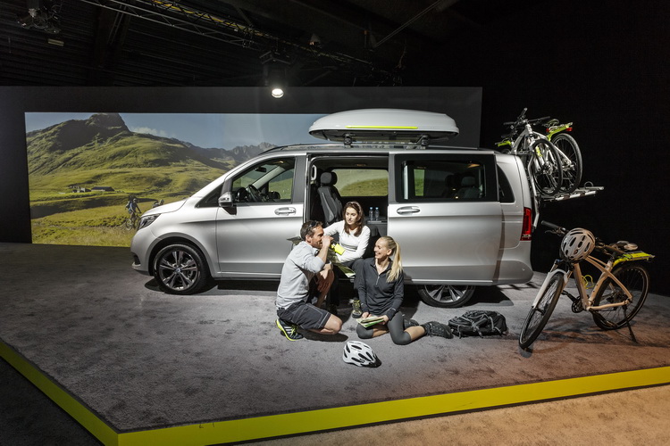 新V-Class在安全性上也有進一步提升,將側風穩定輔助與注意力警示輔助等系統列入標準配備,360度環景攝影顯像與主動式倒車輔助系統則列為選購配備。動力上歐規車型在上市初期只會有柴油引擎選擇,所採用的2.1升排氣量直列四缸渦輪引擎在M-BENZ轎車系中從A-Class到S-Class身上都可以看到,不過為了滿足不同消費者的需求,在動力輸出上共提供136匹、163匹與190匹三種最大馬力版本,所搭配的變速系統則為7G-Tronic PLUS手自排變速箱。車系中最頂級的「V250 BlueTEC」車型除了擁有與過去3.0升V6柴油渦輪引擎相當的動力輸出表現外,在油耗經濟性方面更是最多提升達28%,廢棄排放也符合歐洲六期法規。
