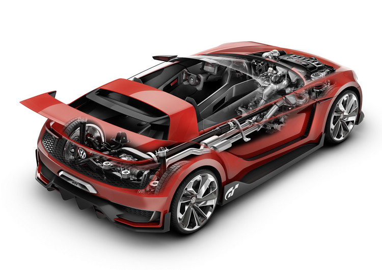 ![]() ▲這款車當初是為了成為GT6專屬車型,VW採取內部競圖方式選出優勝作品,最後再經GT電玩製作人山內一典欽點。VW GTI Roadster是一款雙座敞篷車,搭載3.0升V6 TSI雙渦輪缸內直噴引擎,最大馬力擁有503hp,並能在4000-6000rpm之間持續供應最大扭力560Nm,而且在2000rpm低轉速就有500Nm的扭力輸出。變速系統使用7速DSG變速箱,並搭配4MOTION全時傳動系統。由於全車淨重僅有1420kg,使得0-100km/h的加速過程只需3.6秒就能完成,極速也高達309km/h。
