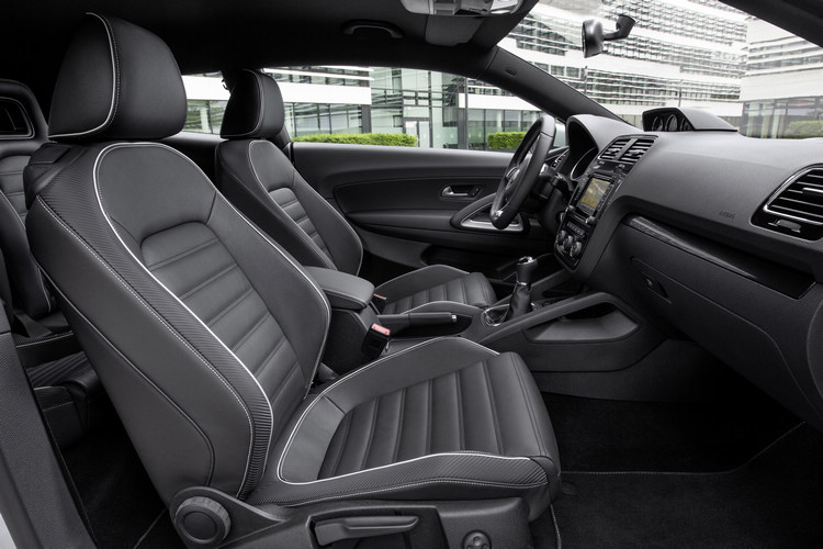 ![]() 內裝方面,Scirocco在中控台上方新增了機油溫度、計時與增壓表。真皮方向盤和真皮座椅都換裝為與Golf GTI相同的款式,並換上全新皮質與配色。音響則升級為400瓦的Dynaudio Excite系統,並納入盲點監視與停車轉向輔助系統(ParkAssist)。