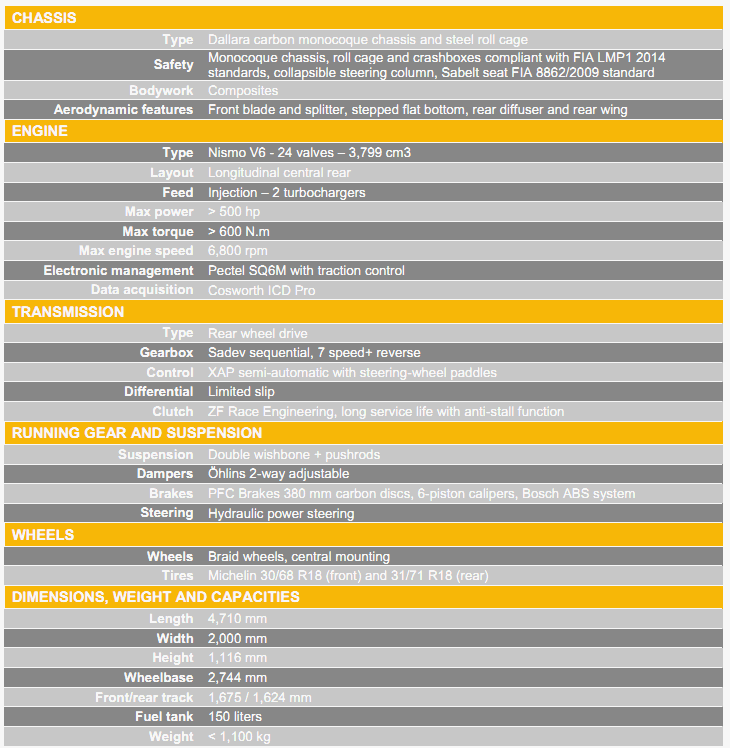 ![]() Renault Sport R.S. 01車重不到1100kg,搭載取自GT-R的Nismo 3.8L V6渦輪增壓引擎,最大馬力超過500hp,峰值扭力突破600Nm,搭配7速序列式變速箱、六活塞卡鉗+380mm碳纖煞車碟與特製Michelin 18吋輪胎。