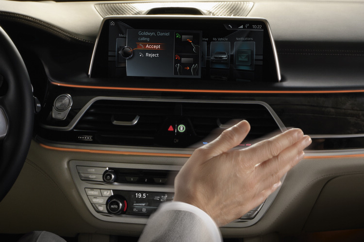 iDrive 作業系統更首次採用觸控設計,因此除了利用控制器、快捷鍵以及聲控輸入來控制之外,還首次提供手勢控制功能。透過3D感測器檢測,在中央控制台區域的規定手勢動作能夠以直覺式的方式控制資訊娛樂系統的常用功能,譬如調節音量、控制3D視圖以及接聽或拒絕來電,也能自行設定自家導航或關閉螢幕。