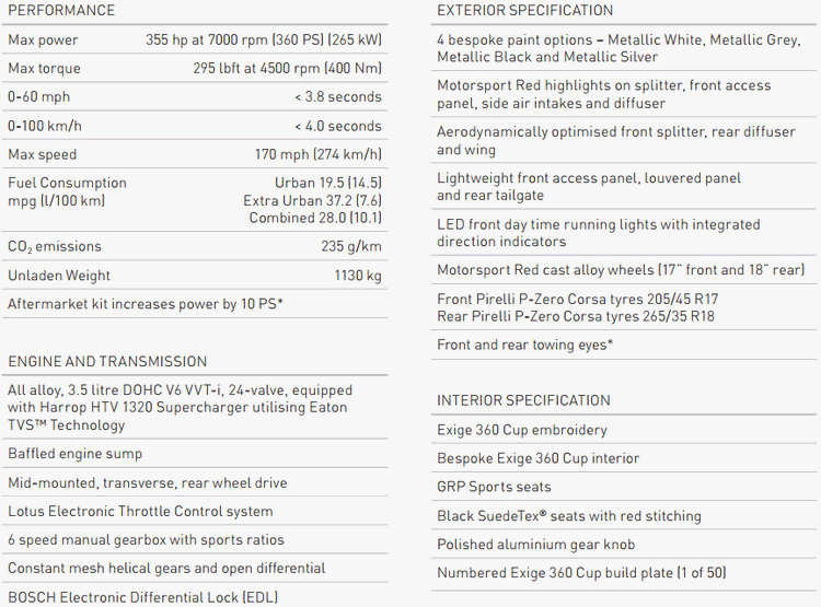 LOTUS車廠賽車部門為旗下Exige V6 Cup進行升級,全新推出性能更卓越的Exige 360 Cup車型,以更優越的輕量化工程結合動力上的提昇,再次確保LOTUS在輕量跑車市場的領先地位,該系列只預計生產50台。