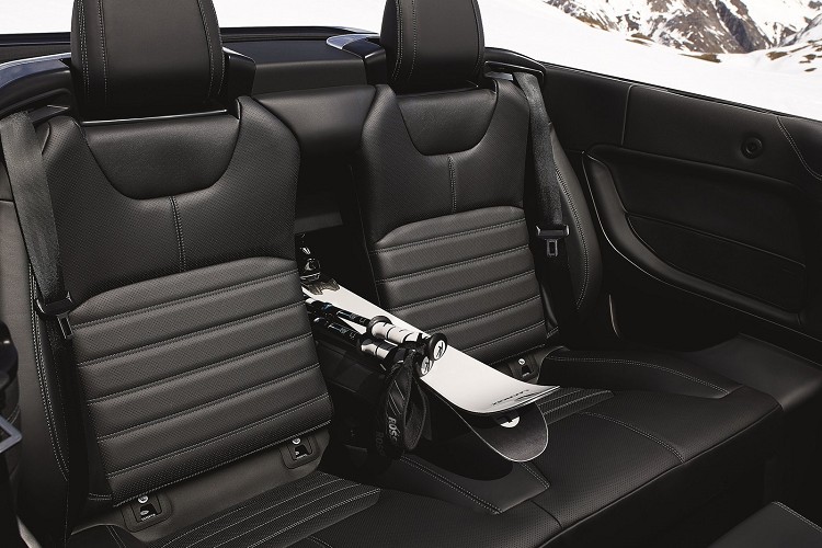 ![]() Evoque Convertible的軟質電動頂篷採Z字型收折,能在車速50km/h之內,20秒左右完成所有動作;頂篷機構的緣故,車尾的行李廂開啟方式有點類似轎車的型式,開口的面積不大,同樣也影響到行李廂的置物容積,基本只有251L的置物空間擺放物品,後座椅背無法分離傾導,中央扶手處有小開孔方便置放較長的物品。