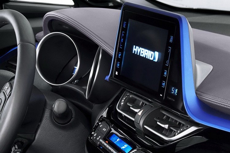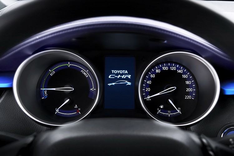 從官方的內裝照片中,C-HR有一個不對稱、簡單整潔的中控台布局,盡量減少不必要的開關整合在8吋的觸控螢幕上,並重新設計改進該屏幕的操作介面以及外擴充的連接服務,所有開關向駕駛者靠攏以駕駛為導向。高階車型內裝提供Nappa皮革,透過鋼琴烤漆的按鍵點綴以及氛圍燈加持,C-HR展現出現代和感性多變個性。