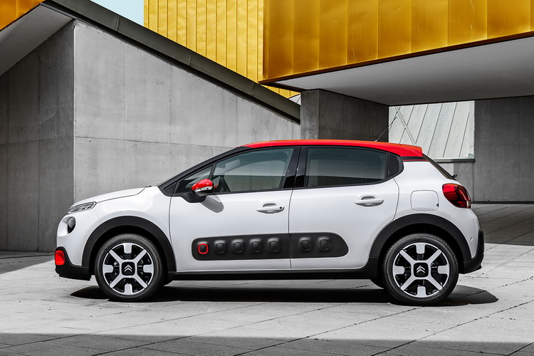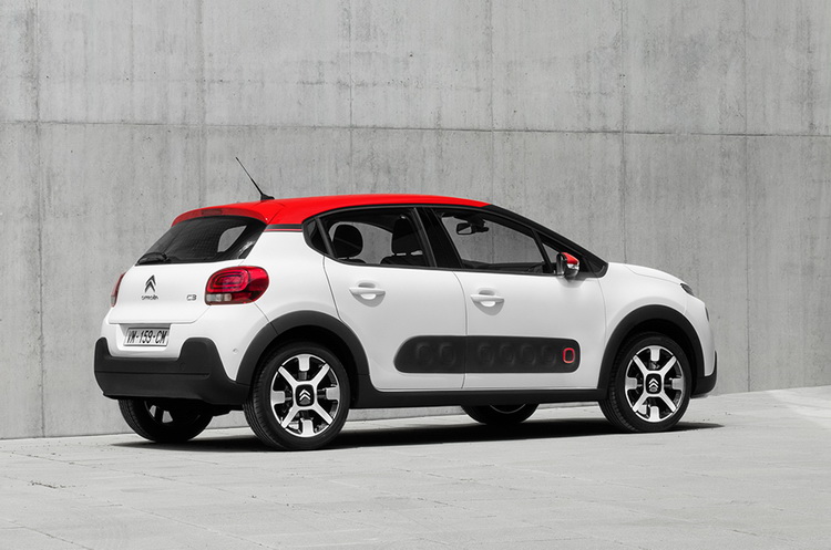 邁入第三代的新C3,外觀上從過去較為圓潤可愛的造型,在導入CITROEN最新的設計語言之下產生了極大的轉變,呈現出大膽凶悍且具有肌肉感的新面貌。出於空力特性考量,新C3車頂高度比現行車低了4公分,全車鈑件所有表面設計也都考量到了空氣流動的最佳化。除了極富個性的車身線條,車廠也提供車主多種搭配選項讓車主打造最符合自己個性需求的風格。包括了雙色調的車身配色與三種車頂顏色選擇(包括霧燈、車外後視鏡與Airbump氣墊防撞護板)。車內提供四種內裝色選擇,配合座椅與中控台簡潔俐落的設計,帶出寬敞開闊的車室氛圍。