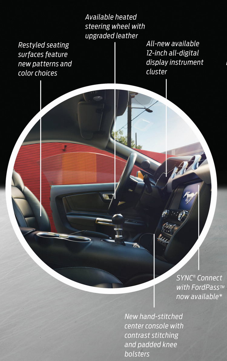 FORD為旗下暢銷全球的Mustang運動轎跑車進行幅度不小的產品更新,範圍擴及車體外型、內裝設計、懸吊升級以及智能配備,同時也重新調整動力編成,將原有3.7升V6引擎取消,把火力集中在2.3升EcoBoost和5.0升V8雙動力,手排變速系統進行升級,更提供全新10速自排系統的選擇。
