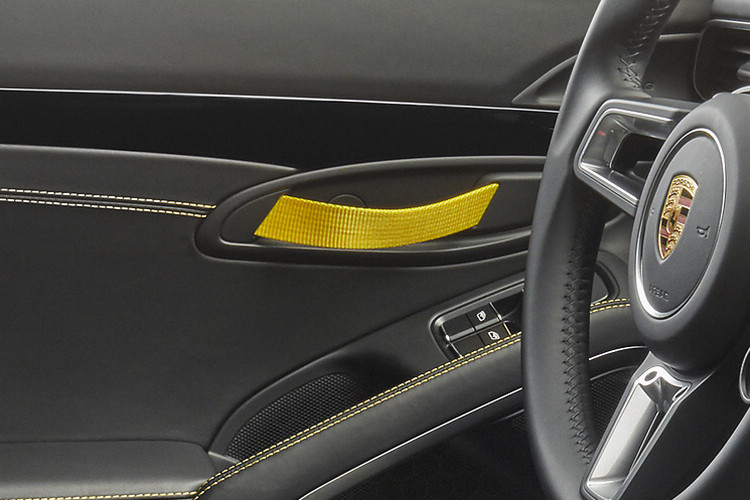 ![]() 911 Carrera T的其他特色還包括使用了專屬空力設計,車外後視鏡施以鈦色塗裝,並且配搭Carrera S式樣20吋輪圈,車門下緣並可看到「911 Carrera T」的貼飾。至於駕駛座椅為四向可調電動椅,椅面加上運動對比飾紋,頭枕也繡有911字樣,原廠並提供桶形賽車椅的選配。方向盤為GT跑車式樣並標配駕駛模式選擇鈕,短排桿及排檔頭都是此車型專屬。