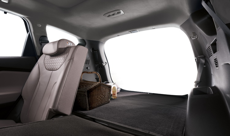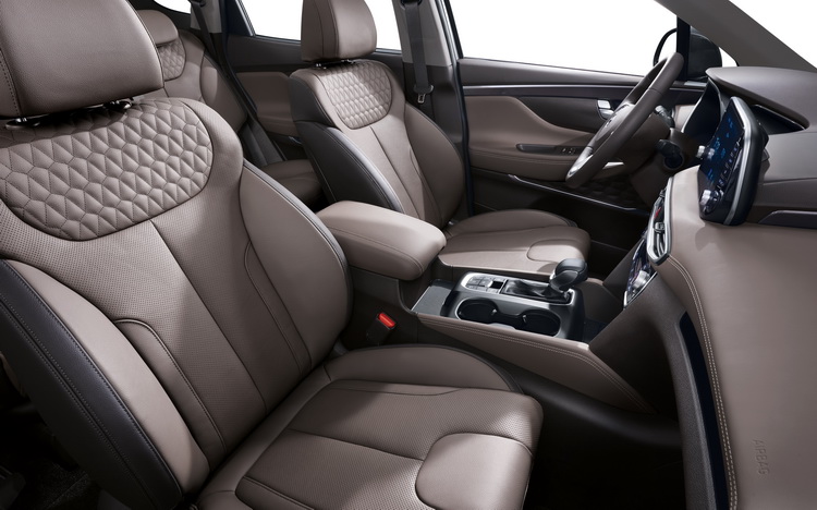 車室內裝設計十分重視質感呈現,並以水平基調的造型及內裝配置凸顯寬敞的空間印象並提升駕駛與乘客的前方視野。新Santa Fe車長:4770mm、車寬:1890mm,比過去小幅增加,軸距也有所增長,在車格放大之下,乘客的活動空間也隨之增加。比如第二排座椅的腳部空間增加38mm,而第三排座椅頭部空間則增加22mm。且第三排座椅只要一個動作就可以隱藏收納,更憎座椅彈性運用的實用性。