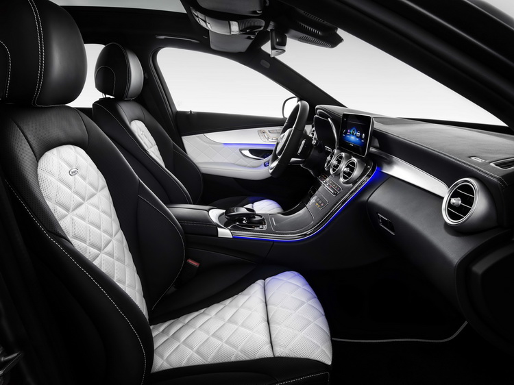 操作介面強化而在車室內裝上,則是導入了新的胡桃木與橡木材質飾板與3D木質中控台飾板,同時也追加了新的內裝色(灰/黑、馬鞍棕)。動態多重充氣支撐調整座椅也是首次加入C-Class,其側邊支撐枕與腰部支撐可以獨立透過電動幫浦對氣室充氣來對乘客身體側邊與腰部做個別不同程度的支撐。而腰部支撐更可以透過充放氣過程中脈動的頻率與節奏達到有如按摩般的身體放鬆效果。