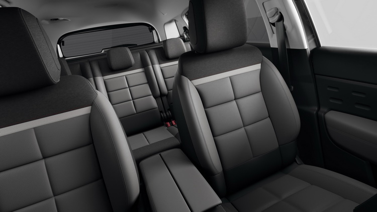 而在車室內,暗橘/黑雙色調座椅與內裝、角度直立,位置高且寬闊的前方控台與柔軟材質的使用給人舒適又受到保護的感覺,前座椅並具有電熱加溫與按摩功能。後座椅背可獨立調整椅背傾斜、前後移動、放倒椅背且擁有同級數一數二的行李廂空間(依後座椅位置不同達580-720公升)。