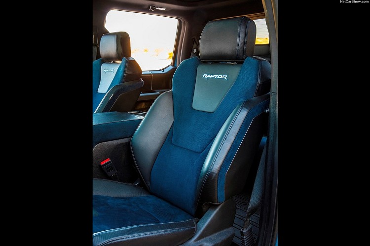 內裝維持原有樣貌,沒有最大幅度的改變,最大不同就是換上Recaro運動化座椅,能帶來最佳身體支撐性,降低因激烈駕駛所帶來的搖晃。座椅的顏色還刻意使用Ford GT的標準藍色,搭配Alcantara皮料營造出運動又跑格的車室氛圍。外觀車色增加Ford Performance Blue、Velocity Blue 與 Agate Black三種,除此之外鋁圈增加胎圈鎖定機構,這是新年式小地方的改變。升級版的F-150 Raptor將於年底在美國正式銷售。