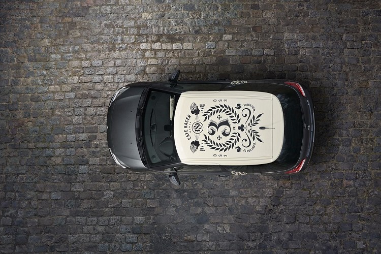 至於車內,有兩張Trinitario Brown Nappa咖啡色真皮座椅,打洞真皮包覆方向盤,金屬踏板等;同樣車內可以看到專屬Café Racer圖案,奶油白中控台大面積圖騰與車頂樣貌相仿。特仕車配備也不馬虎,HID大燈、倒車顯影、7吋觸控螢幕支援CarPlay和MirrorLink、衛星導航等。