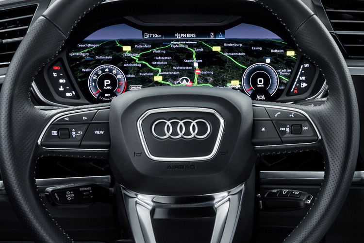 ![]() 類比儀錶在Q3上已經看不到,即使是基本款也標配10.25吋的數位儀錶板,在頂規的車型上配置的是功能更強大的新一代MMI Navigation plus,搭配10.1吋觸控螢幕,並支援自然語音聲控輸入指令功能,全數位虛擬座艙儀錶另外還提供三種顯示模式的選配。