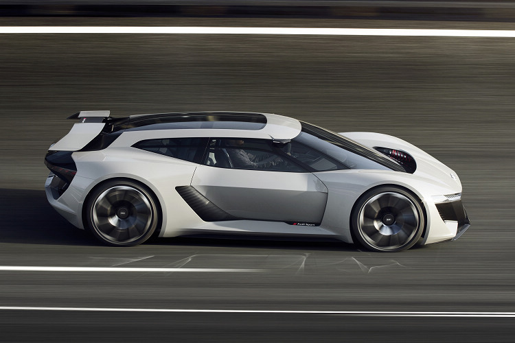 ![]() ▲PB 18 e-tron座艙設計相當獨特,它是將所有操作介面和座椅用一座活動式單體殼置入車內。PB 18 e-tron採用的是跑車典型的中置引擎架構,車輛重心位在座椅與後軸之間,車體則以鋁合金與碳纖維材質製造,加上配置相對較輕的固態電池,預估全車重量不會超過1550kg。全車長度4.53公尺,高度才1.15公尺,軸距則為2.7公尺;車頭除了熟悉的Audi水箱罩,扁平的頭燈組內建數位矩陣技術和遠光雷射燈科技,也就是應用在R18賽車的相同技術。 ![]() ▲側面輪廓的諸多設計元素,讓人聯想起Shooting Brake。![]() ▲擾流翼平時固定,必要時能向外伸展獲得大多空力效率。