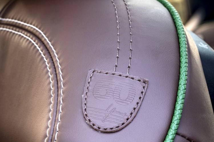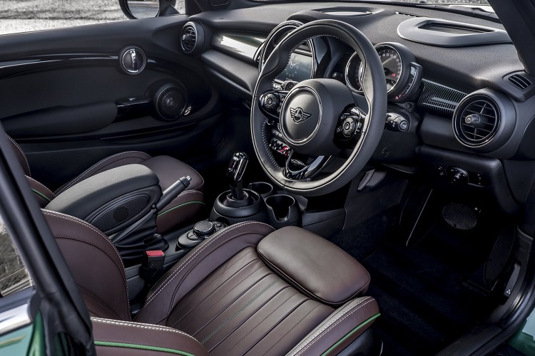 優雅中帶有年輕的車室座艙,透過LED氣氛燈條來迎合各種駕駛者想要風格,進步增強了獨特的特殊饗宴。內裝以黑色可可咖啡色的MINI Yours皮革,搭配上白色強烈對比色車縫線,車縫線包含方向盤與部分門飾版皮件,這些都是Cooper S六十週年專屬設計。最後駕駛者能在車內發現六十週年專屬標誌,在方向盤、座椅等地方印上專屬字樣。