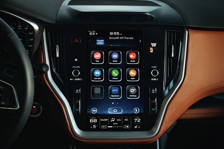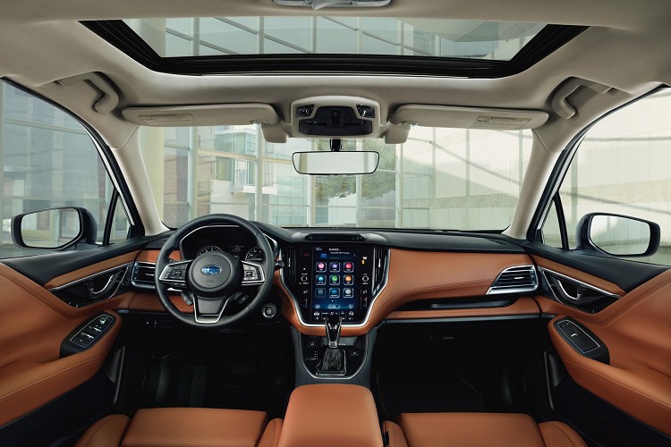 內裝的最大亮點就是11.6吋的全彩觸控螢幕,搭配Subaru Starlink車載技術,支援Apple CarPlay、Android Auto、Starlink SmartDeviceLink應用程式、藍牙、收音機、倒車影像等。還能藉由車載Wi-Fi連接,上網直接訂餐廳、飯店、門票等額外功能。高階車型前座帶有10向的電動調整座椅以及三段溫度調節加熱功能,方向盤加熱、Harman Kardon高檔音響等。後排的乘坐空間比起現行車型寬敞、頭部、膝部都保有適度的活動範圍,不會顯得壓迫或者侷限。