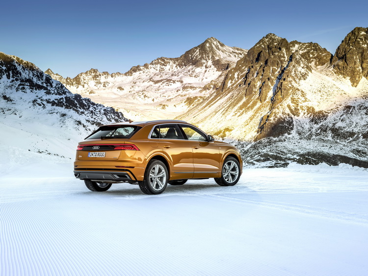 兩款引擎中,搭載於「Q8 55 TFSI」的3.0升V6燃油直噴汽油渦輪引擎可輸出340hp最大馬立與、51kgm/1370-4500rpm最大扭力。搭配八速Tiptronic手自排變速箱,0-100km/h加速成績為5.9秒,極速被電子限速於250km/h。