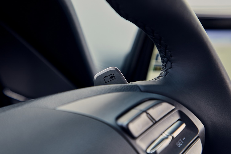 Eco DAS的能源預判管理系統可在車輛上坡或下坡時對電池的充放電做最佳化管理,讓電池維持最佳的運用效率。當車輛在下坡狀態回生的電力已經將電池充飽時,電動馬達就會介入驅動來減少引擎消耗燃油。Eco模式下剎車能源回生系統的剎車力道可以透過方向盤撥片做不同程度調整,Sport模式下則是做為手動換檔之用。IONIQ Electric的單一操作設計讓駕駛者只要按住方向盤左方撥片就可以將車停下,不需要踩住剎車踏板,對於斜坡停車在起步等狀況很有幫助。