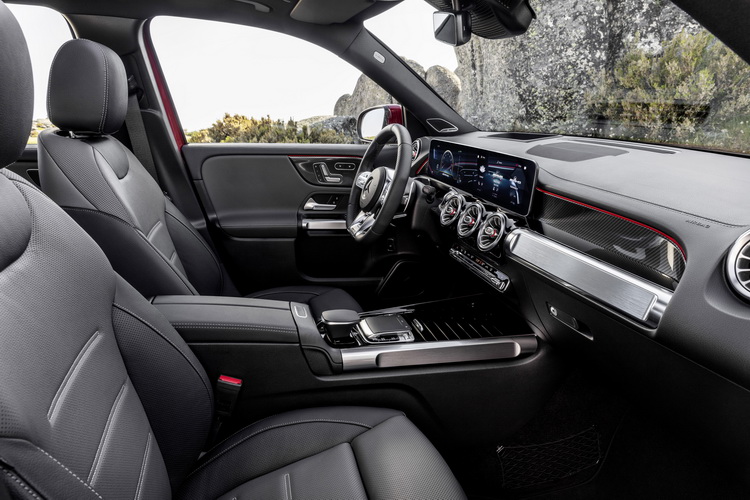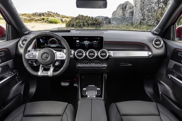 外裝上,GLB 35 4MATIC率AMG 35系列之先採用AMG專屬水箱罩,其他像是前下擾流、19吋多輻式鋁圈、車頂擾流尾翼、後保桿、左右單出尾管等AMG專屬部品都沒少。車內則配備了使用ARTICO高檔人造皮革與DINAMICA微纖維材質包覆的運動座椅。中控台上的影音資訊螢幕則可以選擇包含「Supersport」在內的三種AMG專用畫面風格。