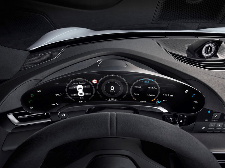 寬帶狀螢幕的獨特內裝設計![]() ▲Porsche Taycan儀錶配置以全新設計與清楚明瞭座艙結構,獨立曲面設計的儀錶板構成前方中控台至高點,陳設以駕駛為中心並確保所需資訊一目瞭然。Porsche Taycan獨立曲面設計的儀錶板構成前方中控台至高點,陳設以駕駛為中心並確保所需資訊一目瞭然。中央 10.9 吋資訊娛樂顯示幕與可選配的乘客顯示幕相結合形成黑色玻璃面板,視覺上與內裝融為一體。操作介面均為 Porsche Taycan重新設計,大幅減少實體按鍵與旋鈕,以直覺化觸控操作及語音辨識功能取代,僅須說出「Hey Porsche」指令即可啟動操作。