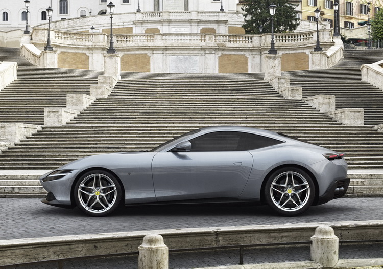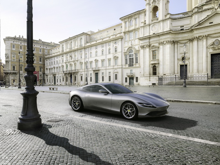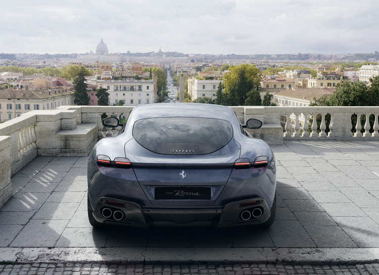 Roma的設計主題為「超越時代的優雅」,FERRARI還賦予它「2+Coupe」的稱呼,跟Portofino一樣,前座後方設有兩張空間只達到最低要求程度的後座椅。車身外觀洗鍊的線條比例、優異的動力與操控表現才是它追求的重點。Roma也展現了1950~1960年代羅馬的風情,讓當時羅馬人無憂無慮的生活風格在這部車上得到體現。