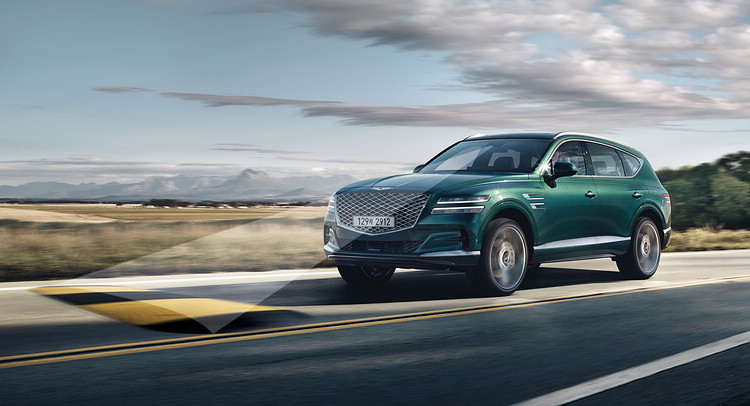 ![]() ▲GV80標配AWD傳動及多地形控制系統,透過後軸的電子控制限滑差速器,能讓車輛通過各種極限地形。在韓國市場,初期動力採用的是3.0升六缸柴油引擎(278ps/60.0kgm),隨後還會追加兩款汽油渦輪引擎的車型。GV80多數車型都標配AWD傳動系統和多地形控制系統,透過後軸的電子控制限滑差速器,能讓車輛通過各種極限地形;除此之外,還另外提供後驅版本的選擇。而在一般道路上,更可選配升級主動式電子控制懸吊,利用位於車頭的攝影鏡頭和導航圖資,即時改變懸吊特性,讓車輛保有兼顧舒適與運動性能的完美駕馭體驗。 ![]() ▲透過攝影鏡頭監控前方路況,懸吊設定會即時改變特性。
