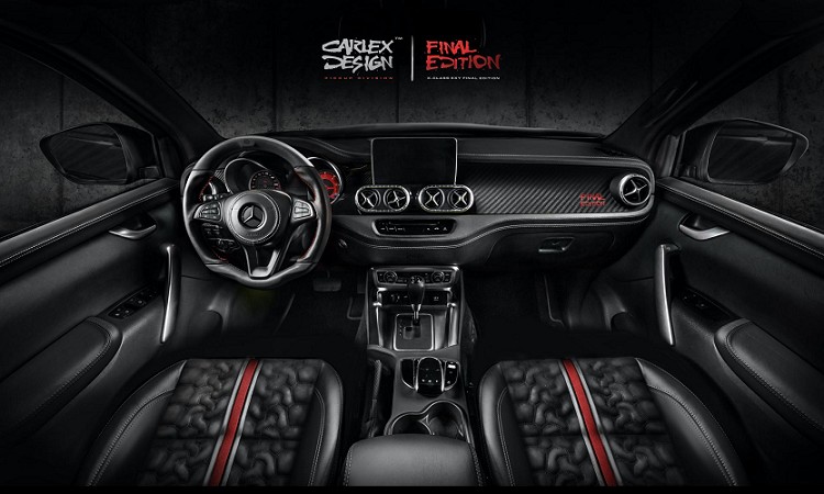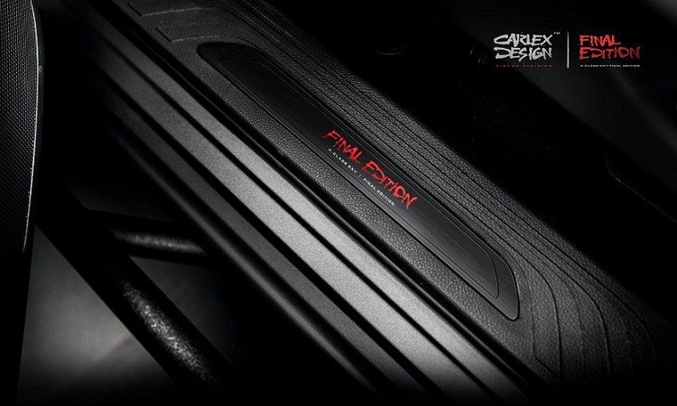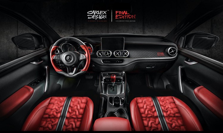 在外觀上,Carlex Design的X-Class Final Edition具有堅固的車身套件,並已與車身相同的顏色塗裝,以及碳纖維附加套件。越野套件包含LED車頂燈條、前防刮板、引擎蓋飾板、登車門檻和全地形輪胎等,客戶可以選擇是否要在車身鈑件上安裝Final Edition車身彩繪,整體搭配下來比起原廠樣貌出色更多且吸睛。