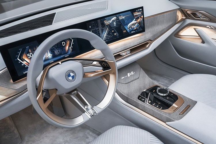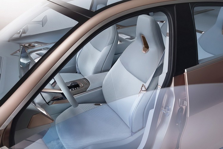 內裝部分頗具未來主義色彩,擁有電動車的消費者可享受到一個全新境界。值得注意是中控台上方一個曲面顯示器,即可以容納數字儀表板也可以同時接收影音娛樂訊息。該顯示器採用非反射玻璃,所以無需使用醜陋的罩子來保護避免陽光直射,並且在不同的環境下,都可以清晰的讀取兩個螢幕內所有訊息。iDrive控制器和水晶製成的座椅按鈕,增添電動車內的高級氛圍。