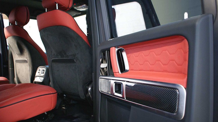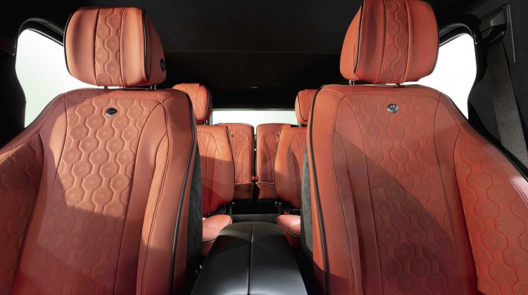 至於車內,採用的是三排六個座位的布局取代標準兩排原設計,Hofele承認最後一排的空間稍嫌侷限,較適合兒童或者身材嬌小的成年人乘坐,如果消費者想要載運多一點的物品時,後座第三排座椅是可以拆除來換取空間。另外,車內用深紅色的皮革包覆座椅、門飾板、方向盤等,座椅的椅背上還有Hofele的專屬銘牌。車頂以及A、B、C柱還使用Alcantara麂皮包覆,中控台也可看到碳纖維飾板,奢華感比起原車還要更高檔。