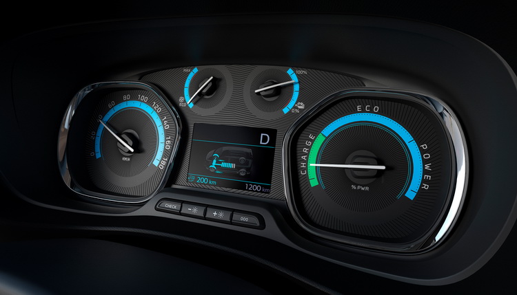 而在車內,前方控台則經過重新設計,中控台觸控螢幕的圖形介面為專屬設計,並搭載TomTom Traffic 3D導航系統;手套箱具「e-Toggle」自動開啟功能;電動駐煞車功能使用上也更簡單;駕駛模式按鈕可在Eco、Normal與Power模式間切換選擇,Eco模式下馬達輸出功率為60kW,適合需要較長續航里程時、Normal模式為80kW,適合一般使用狀況、Power模式為100kW,適合載重較大時的運輸。